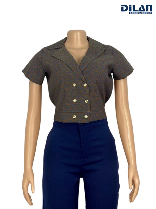 Cropped Short Sleeve Office Blouse